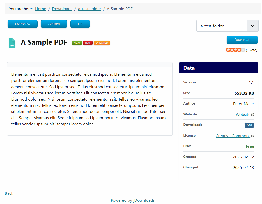 jDownloads 4.1 is a major feature and modernization update focused on Joomla 5 and Joomla 6 compatibility, modernized interfaces, more robust update processes, and many improvements across the frontend, backend, and file handling.